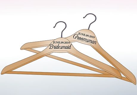 Add calligraphy to personalized hangers. Before the ceremony, you should have a room set up for bridesmaids and groomsmen to change. You can hang up garments, like bridesmaids dresses or suits, with hangers that use calligraphy. Write out the names of members of the wedding party in stylish calligraphy on your hangers. This will be a fun way to incorporate calligraphy into your big day as well as provide gifts for members of the wedding party.