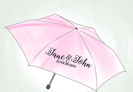 Use calligraphy umbrellas in an outdoor ceremony. If you're getting married outdoors, having certain members of the wedding party carry umbrellas can be a great accessory. Using umbrellas embellished with calligraphy can add to the calligraphy theme. You can write many different things in calligraphy on the umbrellas. You can write you and your spouse's initials, the names of the wedding party, or lyrics to songs or poetry about love.