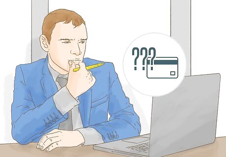 Set guidelines for the card’s use. If you have employees, they need to know when to use the card and when not to. Clarify what kinds of purchases can be made with the card and which should be paid for with cash. Write out guidelines the employees can follow. Alternately, you could simply keep possession of the credit card. That way no one will use it without your permission. You should also look for a credit card that allows you to get individual cards for your employees. These cards come with pre-set spending limits, so you can control how much employees spend.