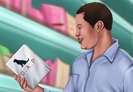 Purchase a dog pheromone product. Dog pheromone products can be purchased without a prescription; however, you should always consult your veterinarian before administering any pharmacological treatment to your dog to rule out any possible health problems or other behavioral issues. You can purchase dog pheromone products from your local pet store or through an online retailer.