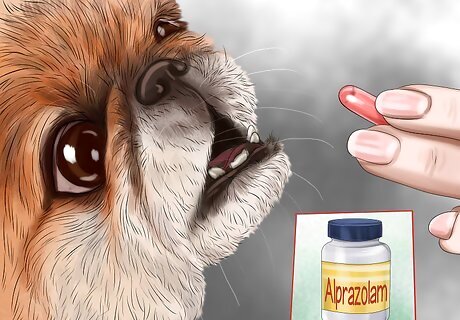 Try medication. Your vet may prescribe an anti-anxiety medicine for your dog. This can be used in combination with pheromone products to calm your dog without sedating it. Ask your vet if an anti-anxiety medication like Alprazolam (Xanax) could be used with pheromone products to calm your dog. Different dogs may react to medication in different ways. If your vet recommends an anti-anxiety medication for your dog, ask for specific instructions on how to administer it and how often.