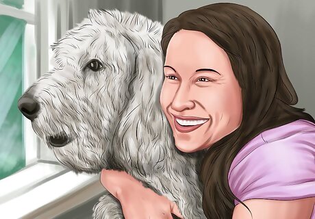 Consider daycare or a sitter. If your dog's separation anxiety is severe, you may want to consider leaving your dog under someone else's watch. Some dogs experience less anxiety if they're left with another person, even if their owner isn't around. You can try having a friend dog sit for you, either at your home or at theirs. You can also take your dog to a doggie daycare facility where your pet can socialize with other animals. You can find dog sitting and day care services near you by searching online or checking your local phone book. Ask your vet for recommendations.