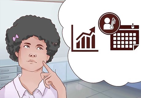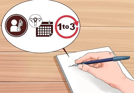 Record your temperature every day on a calendar for one to three cycles. Record your temperature every morning within 1/10 of a degree. Do this for one to three menstrual cycles to get a good sense of your basal temperature fluctuation. You can get a calendar or a chart to record each temperature reading from your doctor or your local women’s health center.
