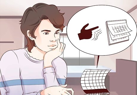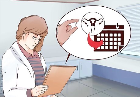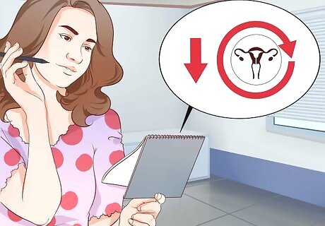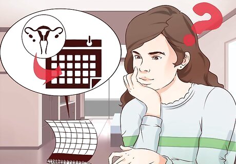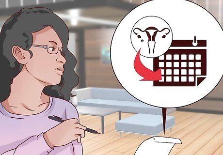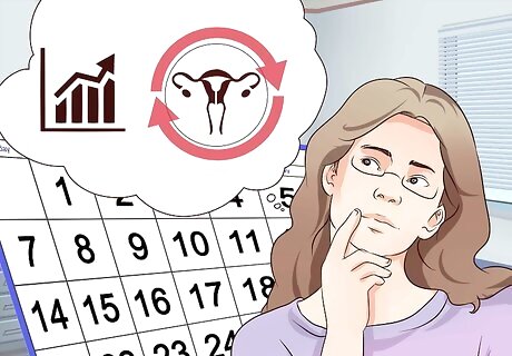 Chart your menstrual cycle on a calendar for eight to 12 cycles. To get a sense of your menstrual cycle, you should be prepared to track your cycle for at least eight to 12 months. Use a calendar you can write on and mark down each day of your cycle or keep track of your cycle on your cellphone’s calendar app. The calendar method will help you keep track of the length of each of your menstrual cycles, which can then help you determine when you are most fertile, or your fertility window. Circle the first day of your cycle, which is the first day you have a menstrual flow, on the calendar. This will be Day 1. Continue to circle each day of your cycle for the entire month. Stop circling days of the month when your period is over. The average menstrual cycle can range between 28 to 32 days. Repeat this day-to-day tracking of your period for at least eight to 12 months. This will give you a clear sense of your menstrual cycle and hopefully account for any irregularities in your cycle.