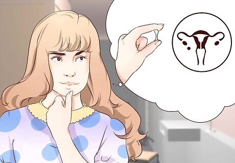 Chart your mucus on a calendar for one to three cycles. You will need to record the color and texture of your mucus every day for one to three cycles on a chart or calendar. Check your mucus by wiping the opening of your vagina with a tissue before you urinate. You can also look at the mucus discharge on your underpants, or put clean fingers into your vagina to check the mucus. Note the color and texture of the mucus. You should describe the mucus as yellow, white, cloudy, creamy, or clear. You should also note if the mucus has a dry, tacky, wet, or slippery texture and a thick, sticky, or stretchy consistency. To do the mucus method, it is important that you are comfortable with touching your cervical mucus. You will need to analyze and record your mucus every day in order for this method to work effectively as a fertility charting tool. This method may not be ideal for women who do not produce a lot of mucus. Your mucus pattern can be altered if you are breastfeeding, if you have had cervical surgery, if you have a sexually transmitted infection, if you use douches or other feminine hygiene products, or if you have recently used hormonal contraceptives, such as emergency contraception or Plan B.