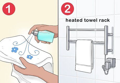 Use perfume for a fragrant rubdown. Choose your favorite perfume and put two to three drops of it onto your towel before bathing or showering. Leave the towel on the heated towel rack or radiator until it warms up a little. After bathing or showering, give yourself a vigorous rubdown with the warmed, scented towel. The warm towel will feel cozy and soothing and the fragrance will be left on your skin, subtle but lovely.