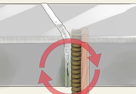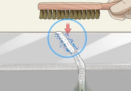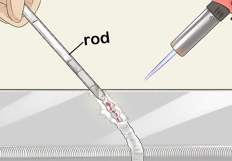 Observe the deposit. The material should bond smoothly. The repair rod will melt if overheated, but will not bond properly. Spread the solder deposit evenly over the repair area. A stainless steel brush works well for this step.