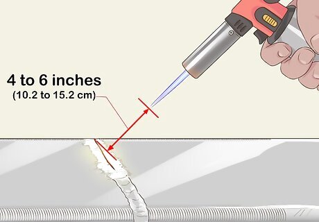 Hold the torch tip 4 to 6 inches (10.2 to 15.2 cm) away from the parent metal. If it is necessary to apply the flame directly to the rod to get it started, pull the torch tip back even farther from the work surface and keep it moving.