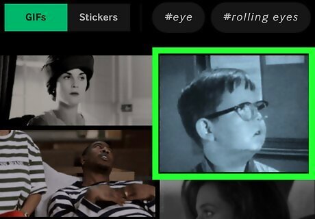 Tap the Gif you want to use. If you don't like the Gif as it appears, you have some option for editing it: Edit the length by dragging the gray box around the video timeline in from the left or right. Add a caption by typing into the "Add a caption…" box. You can also add text to, mark up, and crop/rotate the Gif.