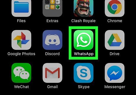 Tap to open WhatsApp. It’s a green icon with a white chat bubble with a phone inside of it.