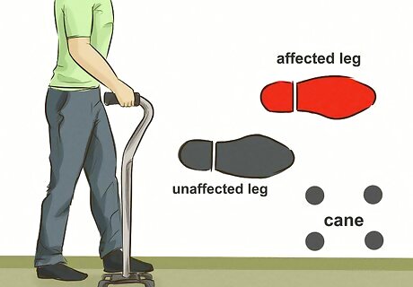 Start walking with a cane. You may have to use a walking aid such as a cane or walker. Your physical therapist should train you how to use this before you leave the hospital. If not, invest in a cane with a rubber stopper on the end. Choose a grip that is comfortable. Hold the cane in the hand opposite your affected side. As you move your affected leg, move the cane forward as well. Keep the cane still when moving with your unaffected leg.