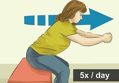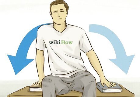 Shift your weight from side to side. Sit down on a bench with a book on either side of you. The books should be roughly the same size. Place your hands on the books. Lean to one side, shifting your weight to that side. Gently return to center before shifting your weight to the other side. Do this ten times. You can also practice shifting forward and back. With your hands on the books, gently lean forward while keeping your hips straight. Then slowly move into a small back lean.