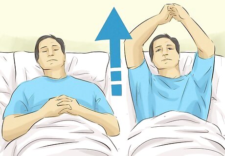 Improve shoulder motion. Lie on your back with your hands clasped beneath your breast. Gradually raise your arms until your clasped hands are above your shoulders. After a second, lower them back down again. Repeat five to ten times.