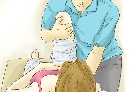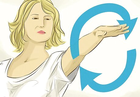 Rotate your arms. At least three times a day, move your arms through their full range of motion. Arm exercises will help your balance when you are walking as well as your ability to pick up and lift objects again. First, stretch out your affected arm until you can feel a slight burn. Hold it for 60 seconds (or as long as you are physically able) before relaxing. Make a wide circle with your arms. Go slowly, and try to reach out as far and high as you are able. Raise your arms above your head before lowering them. Repeat this motion at least five times. If you cannot raise your arm high, ask your physical therapist or caretaker to move it for you.