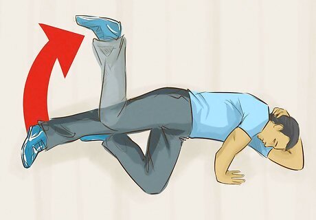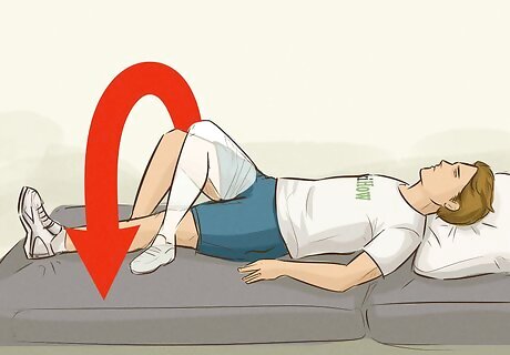 Practice walking while lying down. Lie down on the unaffected side of your body. The unaffected leg should be bent beneath your body to support your weight. Slowly bend your affected leg back so that your heel is reaching your backside before slowly straightening it back to its original position. Repeat five to ten times.