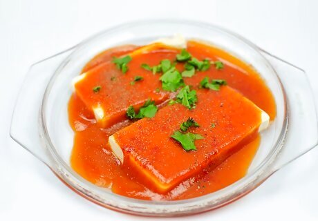 Mix salsa and queso fresco together to make a delicious dip. Create your own spin on chile con queso by combining premade salsa and queso fresco together. Cut a chunk of queso fresco in half and place both pieces in a dish. Pour the salsa and any other ingredients of your choice on top of the cheese, and refrigerate the dip for 2 hours to let the flavors soak in. To give the queso fresco a slightly softer texture, trying microwaving the dish for about 3 minutes before serving. Cilantro and hot peppers are great toppings to use in this dip.