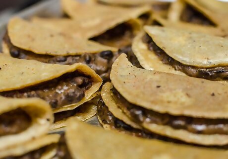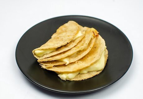 Fill your quesadillas with queso fresco. Prepare your tortillas by heating them in the microwave for at least 10 seconds. Slice off a thin, 3 millimetres (0.12 in) wide slice of cheese that fits within the diameter of your warmed tortillas. Fold the tortilla in half, and top it with some salsa for extra flavor! If you want to fit exactly one slice of queso fresco into a quesadilla, buy smaller corn tortillas at the supermarket. Don’t try to put the cheese on the tortilla before heating it. Unlike other soft cheeses, queso fresco does not melt well, and is better served sliced or crumbled.