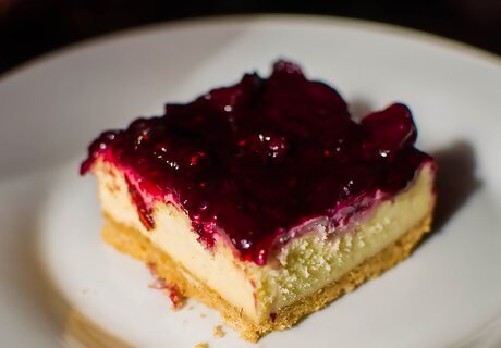 Include queso fresco in your cheesecake to give it a unique flavor. Add your own spin to this rich dessert by mixing in 4 oz (113.4 g) of queso fresco in with your cream cheese. The queso fresco adds a slightly salty taste to the cheesecake, giving it an interesting and delicious flavor profile. To complement the taste of queso fresco, drizzle some caramel sauce of each slice of cheesecake.