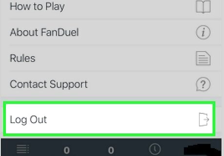 Log out of your FanDuel account. If someone else shares your device or you’re borrowing someone else’s device to check your roster, you will need to log out after you’re done using it. You can do this by opening the app menu, which is accomplished by tapping the three green horizontal bars on the upper left-hand side of the home screen. This is where you’ll find the option to log your account out of the FanDuel app.