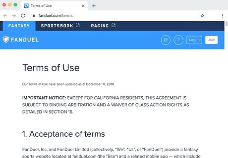Understand the eligibility rules for joining FanDuel contests. You have to be at least 18 years old and a resident of the US or Canada in order to participate in any FanDuel contests involving prizes or entry fees. US residents in Iowa, Arizona, Montana, Louisiana or Washington cannot legally play FanDuel for cash. This is the condensed version, and you can find the more complete rules for eligibility on FanDuel’s Terms of Use webpage over at fanduel.com/terms.