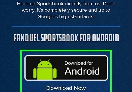 Install the FanDuel app. FanDuel supports iOS and Android, with an app in each operating system’s app store—iTunes and the Google Play Store, respectively. FanDuel also hosts useful links on their iPhone page (fanduel.com/iphone) and their Android page (fanduel.com/android). You can follow these links to bring you to the iTunes and Google Play Store using a browser. If you are having problems downloading the FanDuel app on the Google Play Store, you can manually download the app from the FanDuel website. You can find it on fanduel.com/android-download, along with additional instructions from FanDuel on how to install it on your Android device. It is not possible to manually install the iOS version of the app. The FanDuel Live Scoring app is different from the full FanDuel app. The latter lets you create lineups and participate in contests, while the former only tracks the stats of teams that you created beforehand.