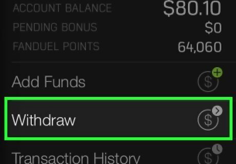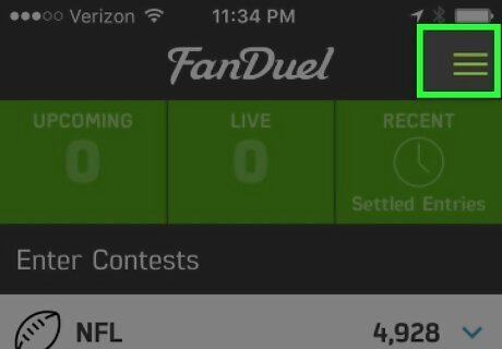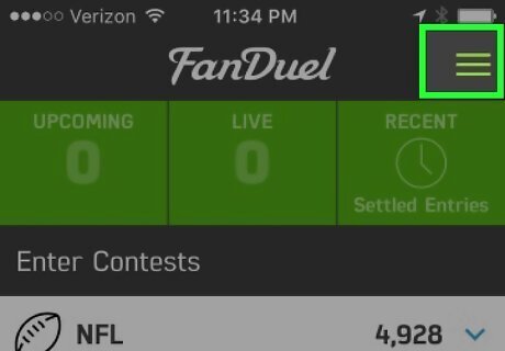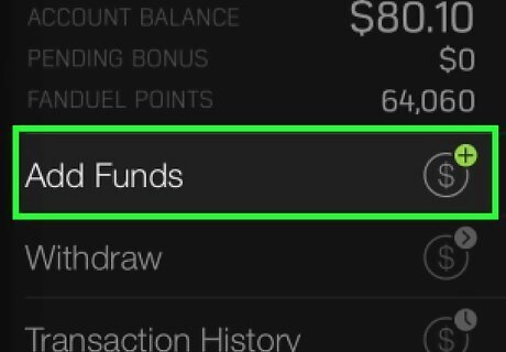 Open the sidebar menu. When you first log on to your FanDuel profile, look at the upper left-hand corner of your screen. You will see three green horizontal lines. Tapping those lines will reveal a menu with various options—including options to add funds, withdraw funds, and review your transaction history. This is your sidebar menu.