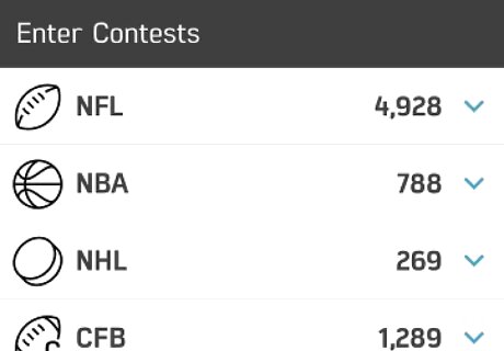 Pick a sport. Once you’ve installed the app on your mobile device of choice, the next thing you want to do is pick the fantasy sports you want to participate in. FanDuel supports leagues for the NFL, MLB, NBA, NHL, CFB, and CBB, though only leagues with open games will be available to participate in. You’ll find a list of available leagues on the lobby screen, which is the first screen you’ll see when you log into the FanDuel app. Once you pick a sport, you will then pick the date and time for the games you want to base your fantasy sports competitions on.