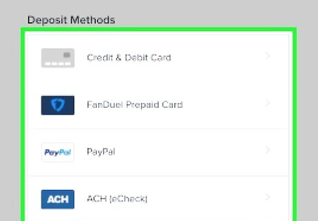 Select “Add funds.” If you want to join contests with entry fees, you’ll have to deposit funds into your FanDuel account. Once you’ve tapped the “Add Funds” option, you will be led to a screen where you’ll be asked how much you want to deposit. FanDuel has set the minimum deposit at $10.00 but gives you the option to deposit $25, $100 or $200 at a time. Select one of these options, then move on to the specific method of paying for the funds.