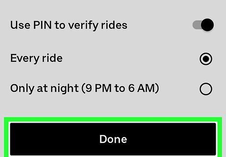 Tap the Done button. It's at the bottom of the screen. Each trip you request will now display a unique PIN when your driver is about to arrive.