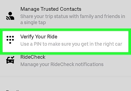 Tap Verify Your Ride under the "Safety" header.