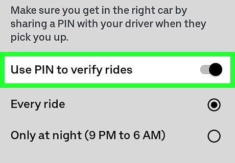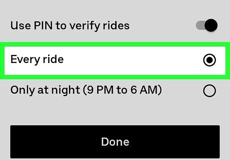 Choose when to use the PIN. Select Every ride if you want to use the PIN every time you ride with Uber, or Only at night to limit your PIN hours to 9 PM-6 AM.