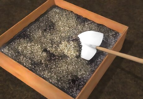 Spread the vermiculite evenly. Because a container is relatively small you'll want to make the most of the entire soil area. You can do this by spreading the vermiculite throughout the pot with a spade. You may add vermiculite to the soil before adding it to the container. This way, you can mix it together without worrying about damaging the plants. If you've properly measured out how much soil needs to go into the container, having that amount in a bag and adding the vermiculite to the bag will allow you to shake it up, thereby distributing it without having to proportion it out yourself.