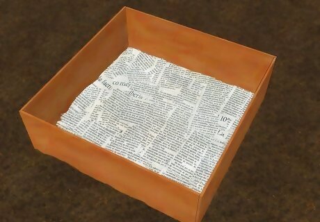 Make a foundation using newspaper or cardboard. Giving your box a floor will limit the plant's roots from encroaching beyond the container while it's growing. Something simple and biodegradable like cardboard or newspaper is a perfect foundation. From there, you can fill up your container with plant-appropriate soil. Landscape fabric is another alternative for this purpose.