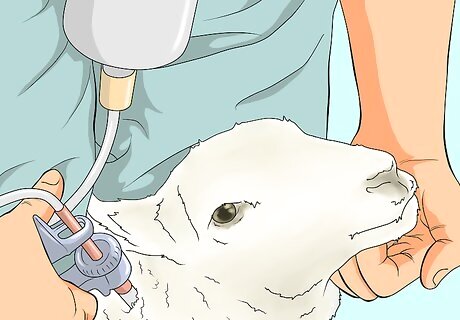 Inject the needle. Either side of the neck is most common. For small lambs normally you pinch the skin and inject the liquid parallel to the skin and for full grown sheep you can jab it into the meat. When the needle goes in you should hear a pop noise.