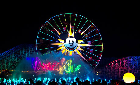 Experience the nighttime spectacular, "World of Color - ONE" featuring dazzling lasers, colorful fountains, and light projections on screens of mist. A show you won't forget, it appears every evening over the lagoon facing Pixar Pier.