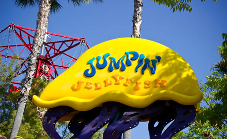 Ride Jumpin' Jellyfish. This kid-friendly ride is among the tamest in the park. Your seat will travel up and down a pillar with a few bounces along the way!