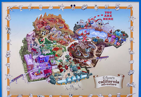 Study the park map. Disney's California Adventure is divided into seven "lands" (or theme areas) including Buena Vista Street, Hollywood Land, Avenger's Campus, Cars Land, Pacific Wharf, Pixar Pier, Grizzly Peak and Paradise Gardens Park. . An eighth land, dedicated to Marvel Comics' superheroes, is coming soon, replacing the now-closed "A Bug's Land."