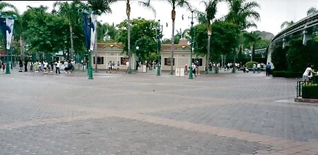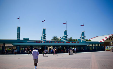 Walk into the park. The entrance will open onto Buena Vista Street, depicting Los Angeles in the 1920s.
