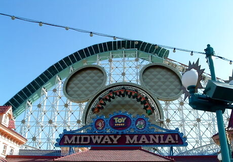 Test your skills in Toy Story Midway Mania. It's a 3D-shooter game sure to thrill everyone in the family- comparable to Buzz Lightyear's Astro Blasters at Disneyland (but here, you are surrounded by other Toy Story characters instead).