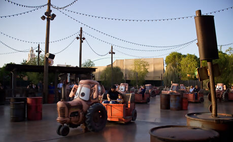 Look for Mater's Junkyard Jamboree. Just a short walk into Cars Land, this is a cross between square dance, tractor-pull, and a Scrambler-like ride, just toe-tapping fun.