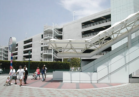Park in the parking structure near the park entrance. Although you should follow signs to get you to Disney's California Adventure Park, look for either the Toy Story or Mickey and Friends lots near the Downtown Disney area. These parking structures are located at 1313 S Disneyland Dr. in Anaheim. . The parking fee is about $20 for cars and more for larger vehicles. If you are staying at an Anaheim hotel, consider using the Anaheim Resort Transportation (more commonly called the "ART") shuttle system instead. Transportation takes you to the parks and saves you money on paying for parking. - since it is a cheaper option that links the Disneyland Resort to most Anaheim hotels. Disney's Grand Californian Hotel and Disney's Paradise Pier Hotel have their own park entrances. But that convenience is often expensive - those hotels can range upwards from $500 per night.