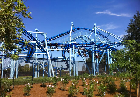 Learn to drive a boat in Boating School. This ride is driven around a watery non-tracked area so even if you are an experienced boater and can deal with not having a propulsion system generated by the park at the entrance to the ride, this can cut you a small break.