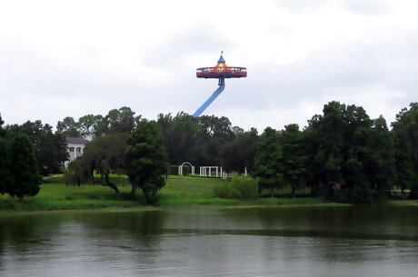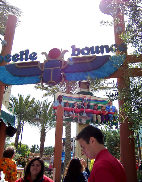 Ride Beetle Bounce with your kids. This super-mild attraction will leave your kids jumpy for a few minutes and want to make them become more like the beetle that all kids think they are. This ride raises them about 15 feet in the air, then bounces them back to earth rather gently.