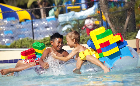 Play in the water park area at the very back of the park. Whether it's sailing down a lazy river in a raft filled with water and LEGO blocks or playing in other water-areas onsite in this land, this area can meet most guests' expectations. However, be prepared to bring some water clothes (bathing suits) underneath regular day clothes to play in this park area.
