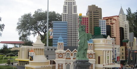 Look at the LEGO New York section. Look at New York's skyline and its intricate detail. Notice it contains the Statue of Liberty and Empire State Building, Times Square, and many other places in this section devoted to New York City.