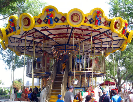 Try the Carousel. Ride a larger LEGO-looking horse on a carousel wheel on this double-decker carousel. This Carousel is one of the few Carousels that exist inside a LEGOLAND park.