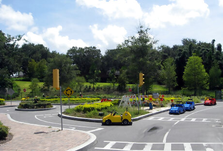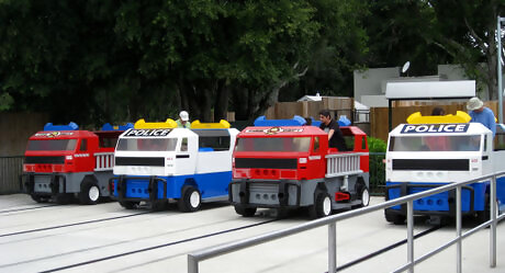 Obtain a LEGOLAND Driver's License at Ford Driving School. Much like that of the Tomorrowland Speedway in Walt Disney World in Florida or Autopia in Disneyland in California, this will have you and your kids driving these LEGOLAND cars around like a pro. If your kids aren't up to driving cars yet, walk up to the Ford Jr. Driving School instead. There, they don't even have to worry about driving and can be left up to sit in the car and watch it move around a circular track by themselves, looking at all the other LEGO stuff nearby. By far, Ford Jr Driving School is the first building you come to of the two Driving School items, but adults can watch their children ride. LEGOLAND Florida Ford Junior Driving School.jpg