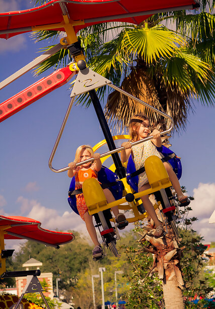 Get used to the kid-friendly freefall tower in Kid Power Towers. Although there is a minimum height requirement, this fun attraction can be ridden by many and can be fun to teach your children what happens during a freefall event while keeping the guest safe. The freefall towers are colorful and fun to look at. Many kids adore the ride towers, and the colors tend to draw the kids' eyes quite quickly as you reach into this area of the park.