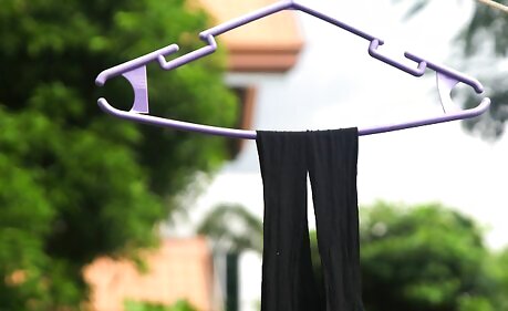 Hang your tights or lay them flat to air dry. You should never put your tights into the dryer, as the heat will damage the fibers. You also run the risk of the nylons snagging in the door or on another piece of clothing. Instead, lay your tights flat or hang them on a clothes horse until they dry.
