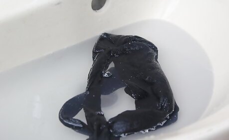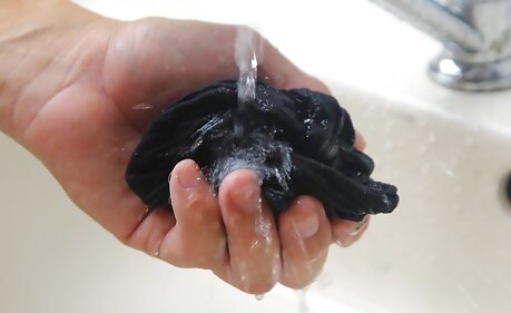 Rinse your nylons under cold running water. Hot water will cause the fibers of your nylon stockings to stretch out, while cold water will help them stay tightly knitted. Empty the soapy water from the sink, then carefully rinse all of the detergent out of your nylons using cold water from the tap. Do not squeeze or twist your nylons as you rinse them.